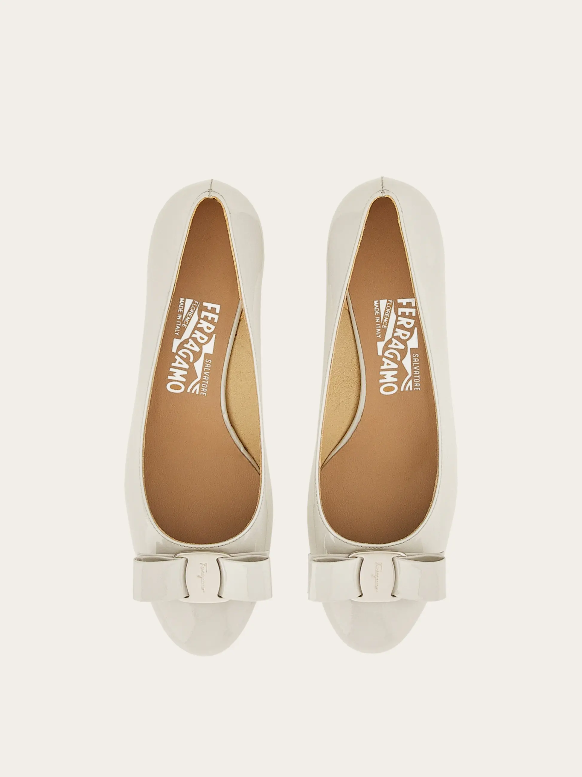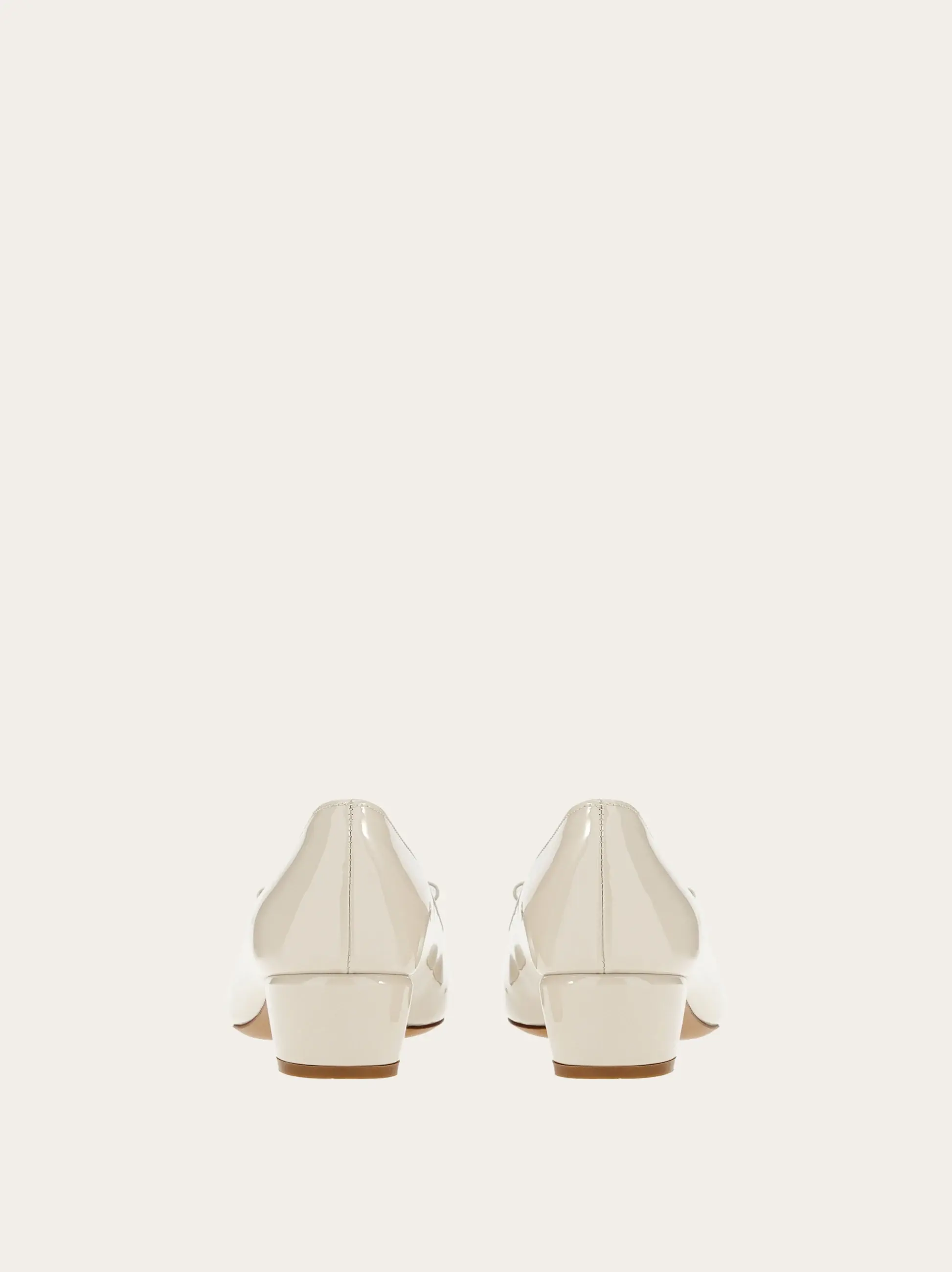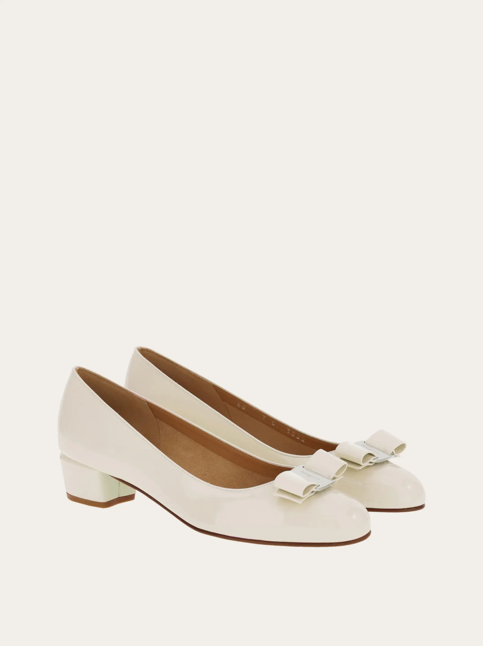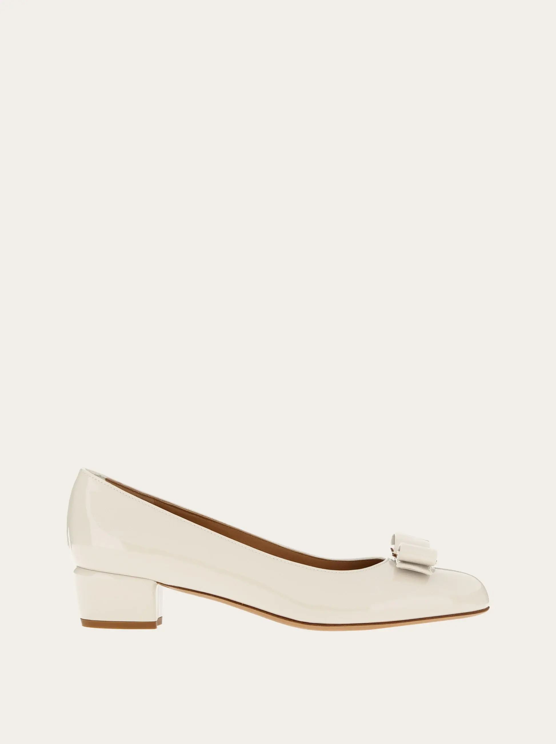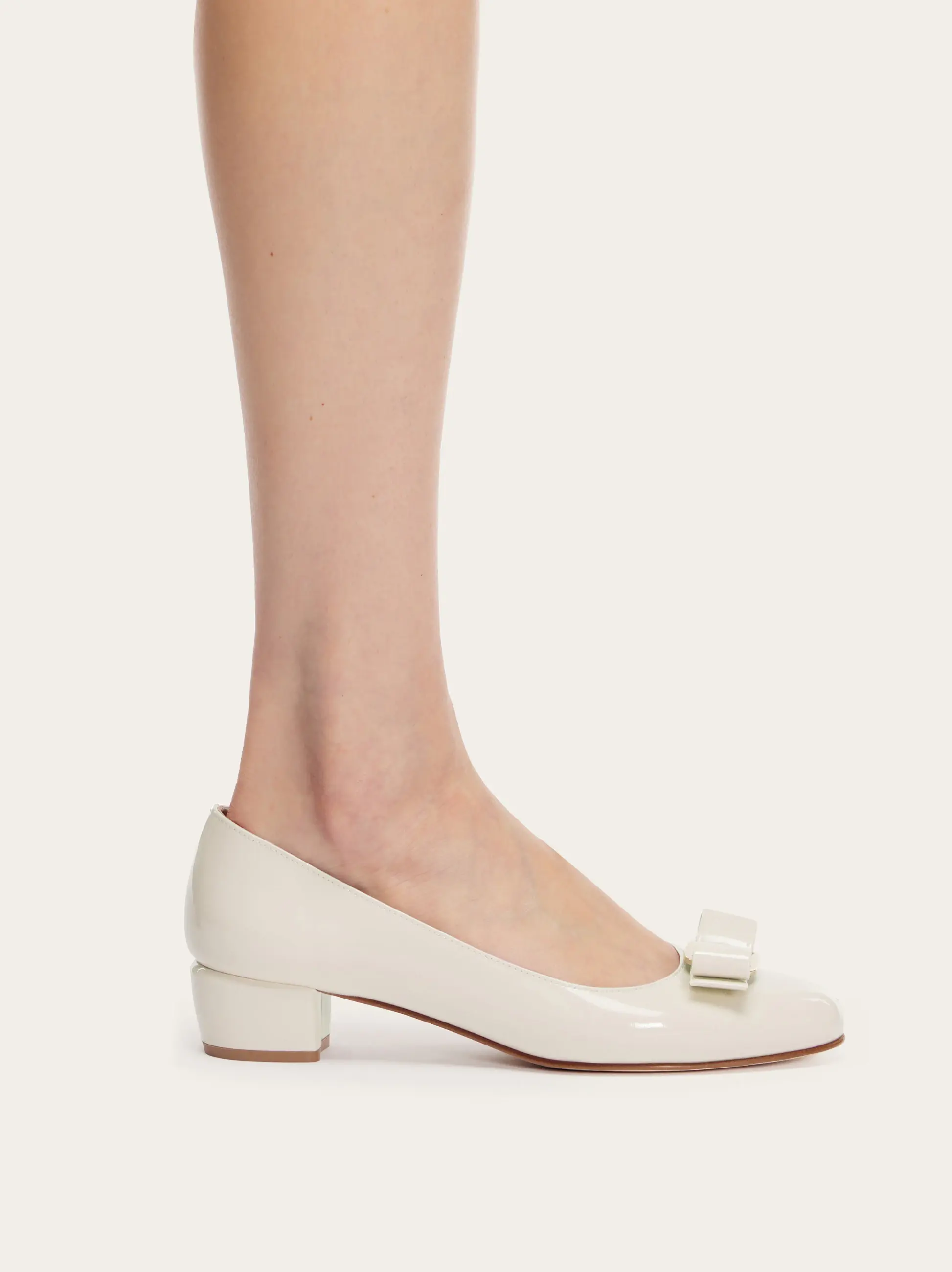 A Ferragamo classic with a new look. The timeless pump shoe with its rounded toe and wrapped heel has a slightly conical silhouette for a more modern edge. Made of calfskin with the Vara bow, this is the perfect slip on to complete formal looks or city daywear.