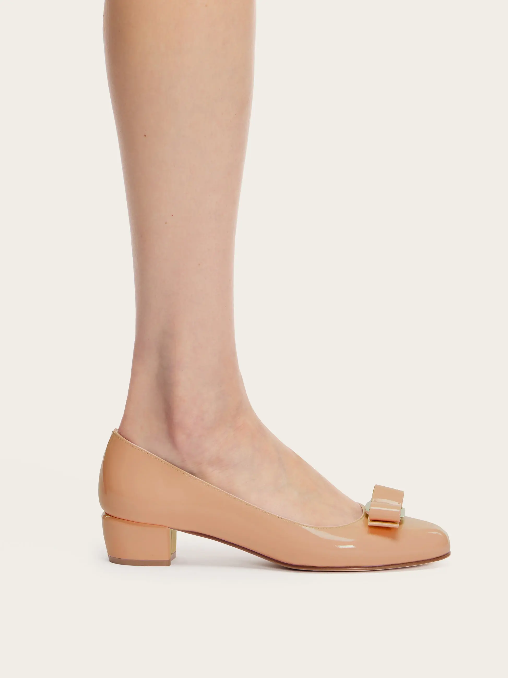 A Ferragamo classic with a new look. The timeless pump shoe with its rounded toe and wrapped heel has a slightly conical silhouette for a more modern edge. Made of calfskin with the Vara bow, this is the perfect slip on to complete formal looks or city daywear.