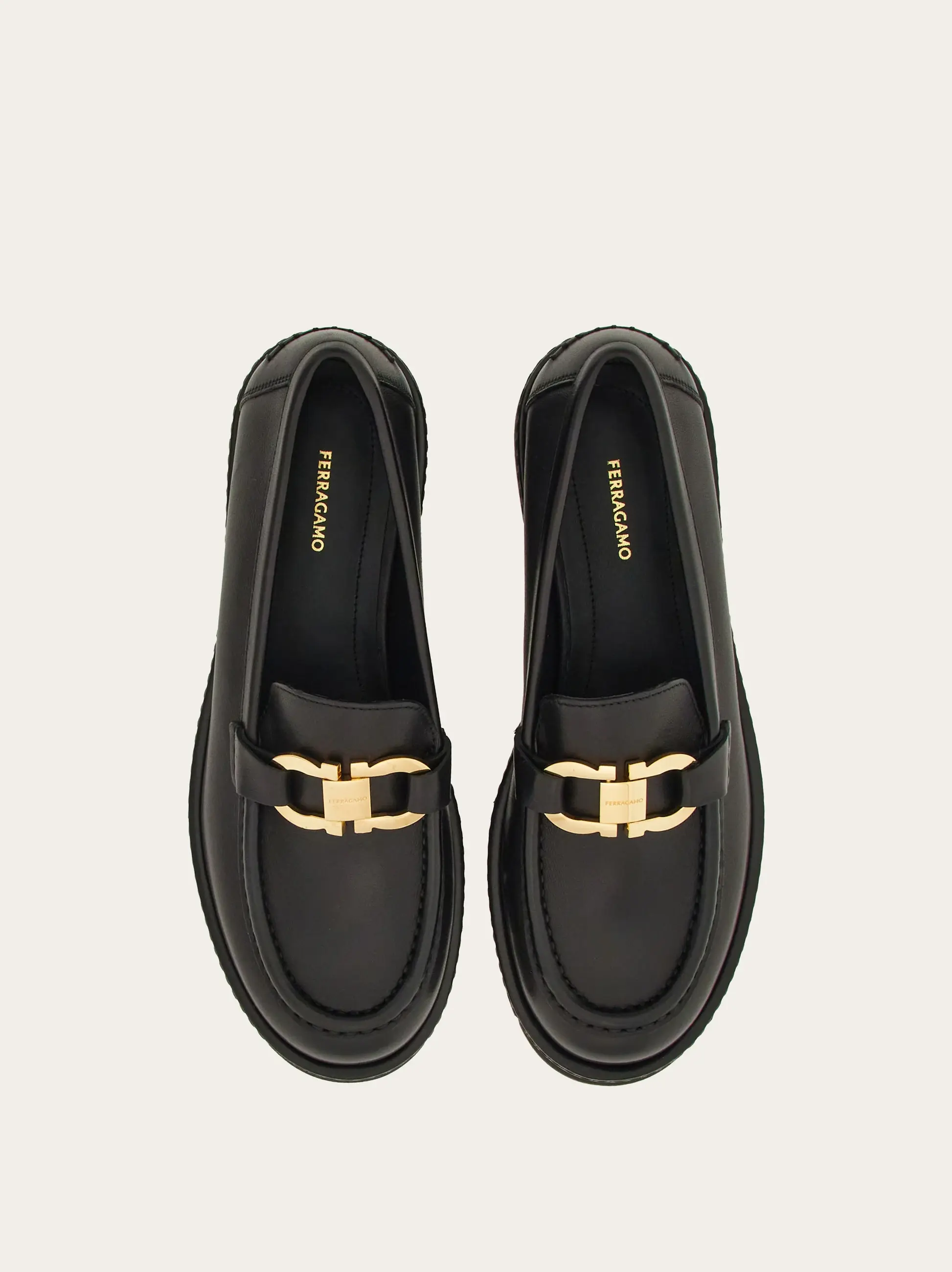 Inspired by the classic British slip on, this new chunky loafer has plenty of character with a high-end feel. The thick rubber custom tread with protruding welt is strong and decisive, while the soft leather upper features a golden Gancio buckle for a luxurious finish.