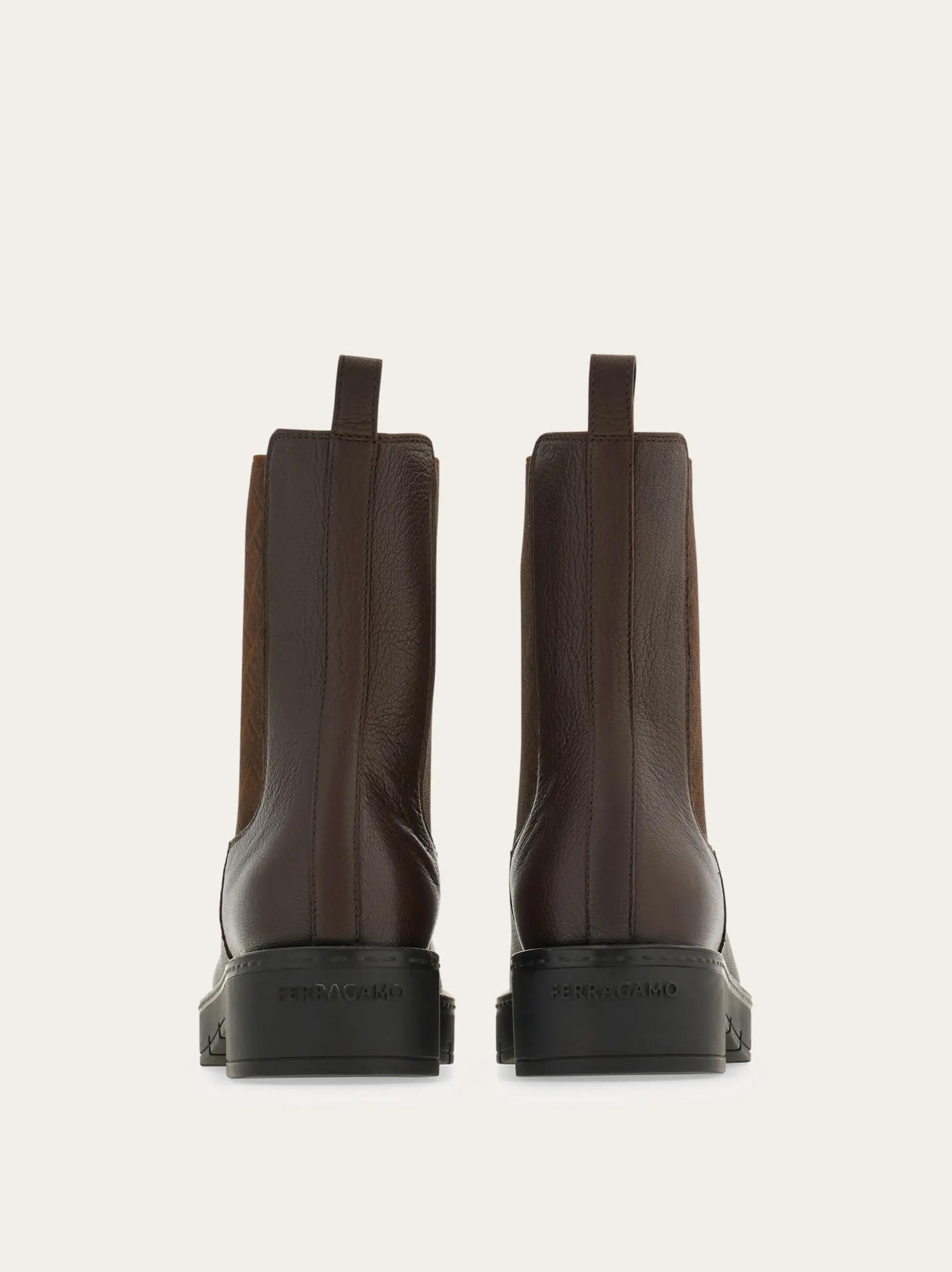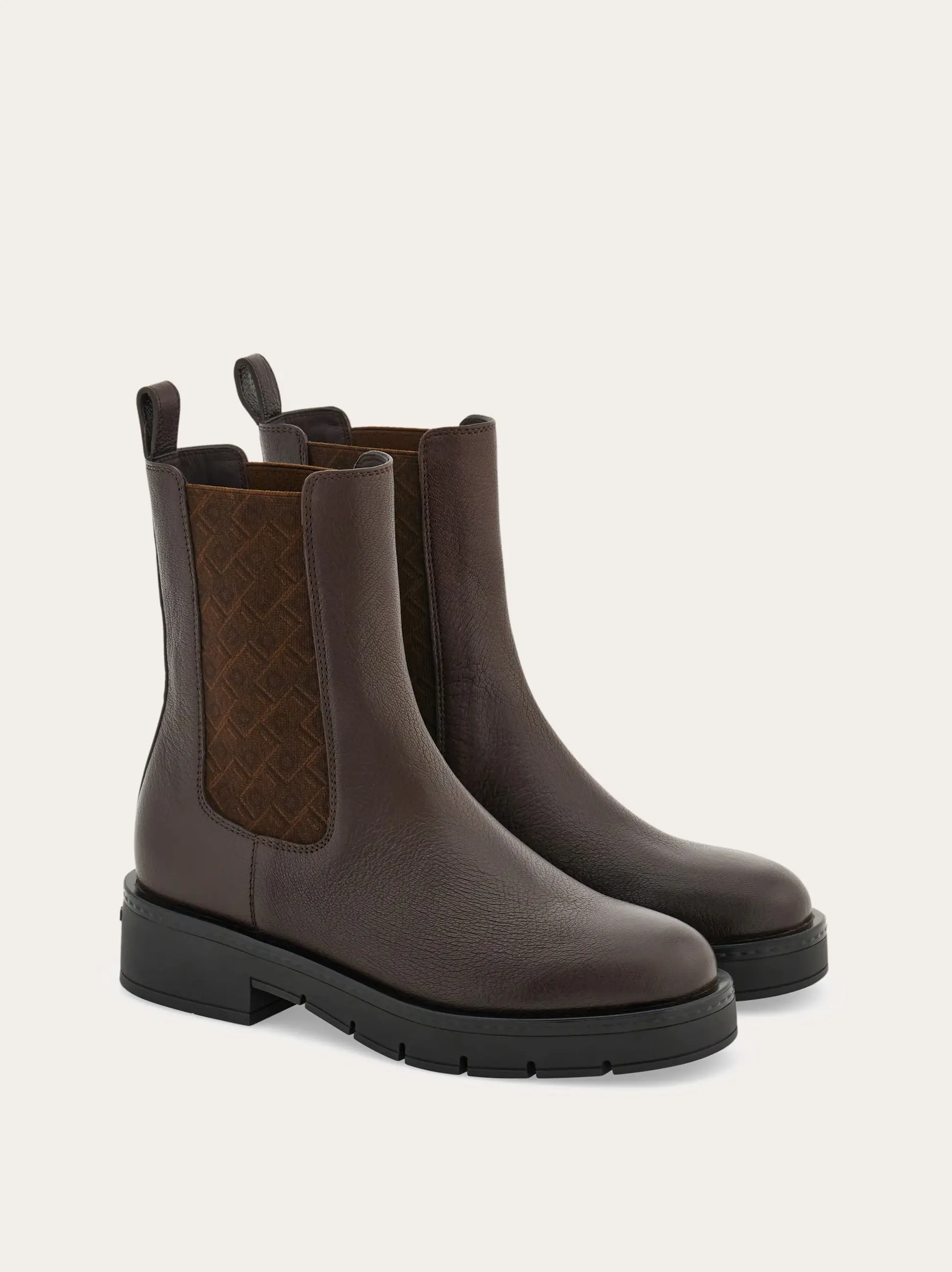 A winter classic with a high end feel, this Ferragamo Chelsea boot is made of the softest kid leather with a natural grain. The ultra-light rubber sole has a chunky tread which provides excellent grip as well as adding a gritty twist to this uptown classic. The elastic ankle inserts feature the Ferragamo monogram for an iconic finish.