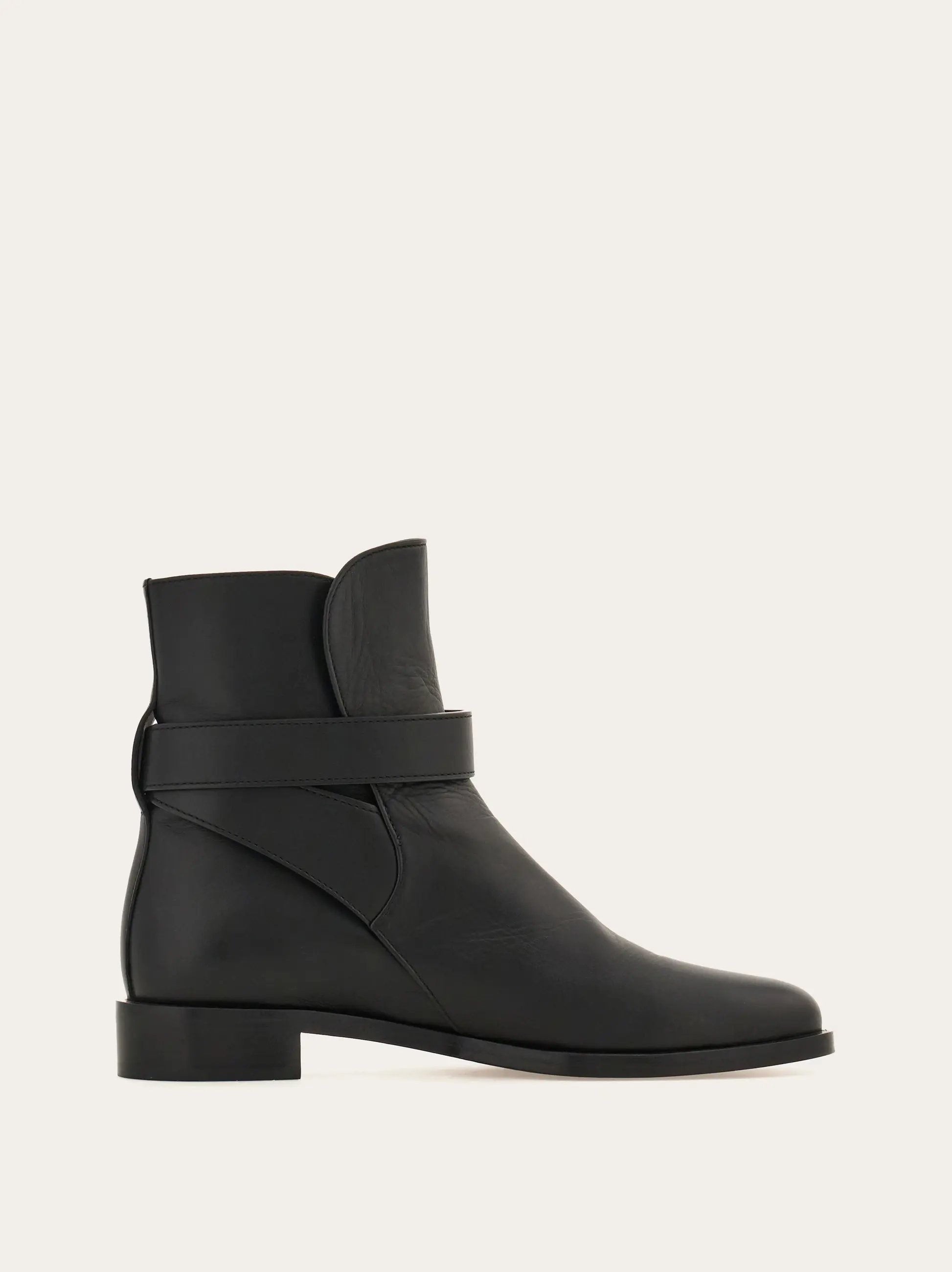 With an almond toe and subtle urban style, this ankle boot is truly versatile. The tongue and wrap around ankle strap are complemented by a golden Hug buckle, completed by a double leather sole with rubber island.