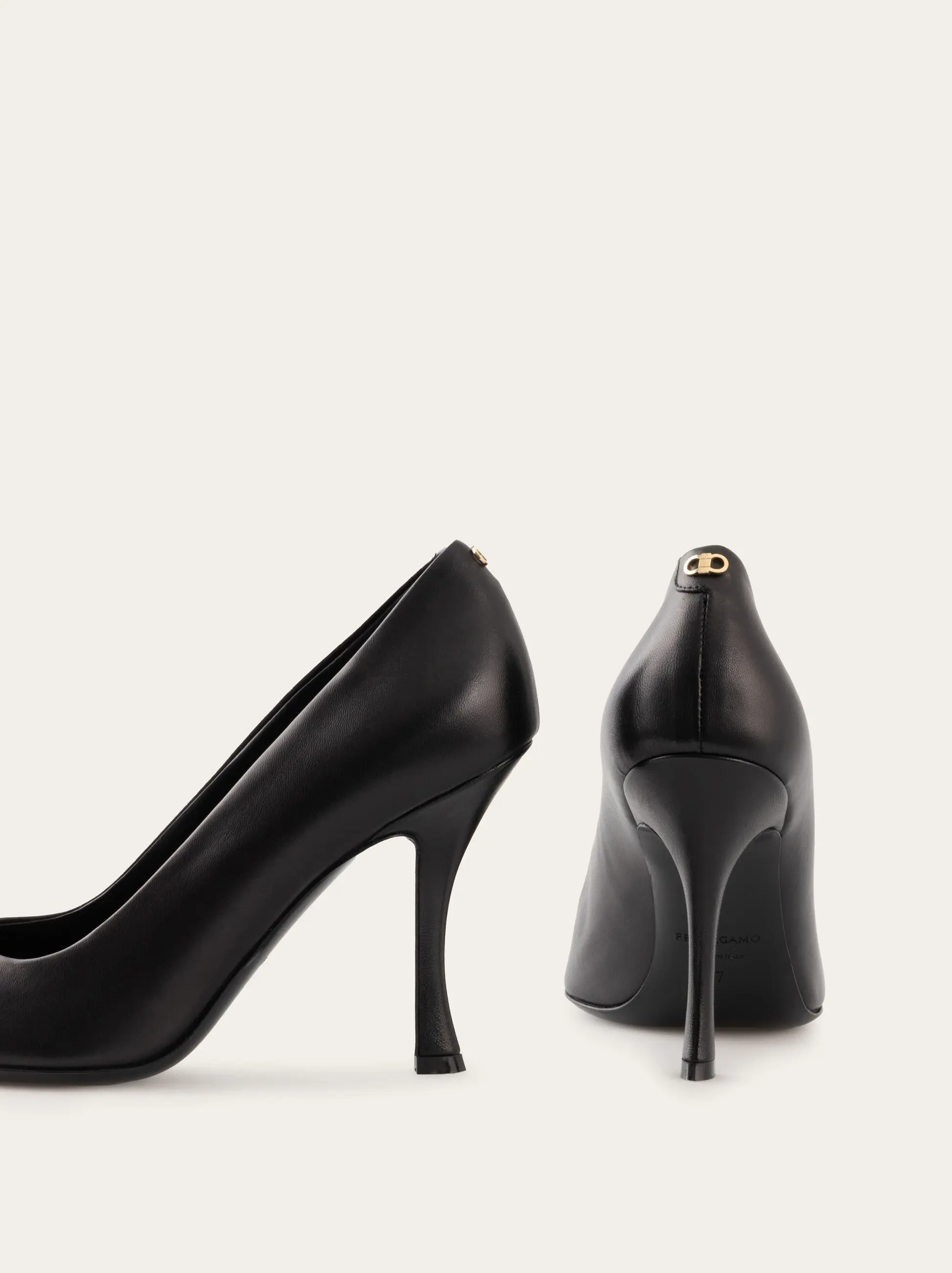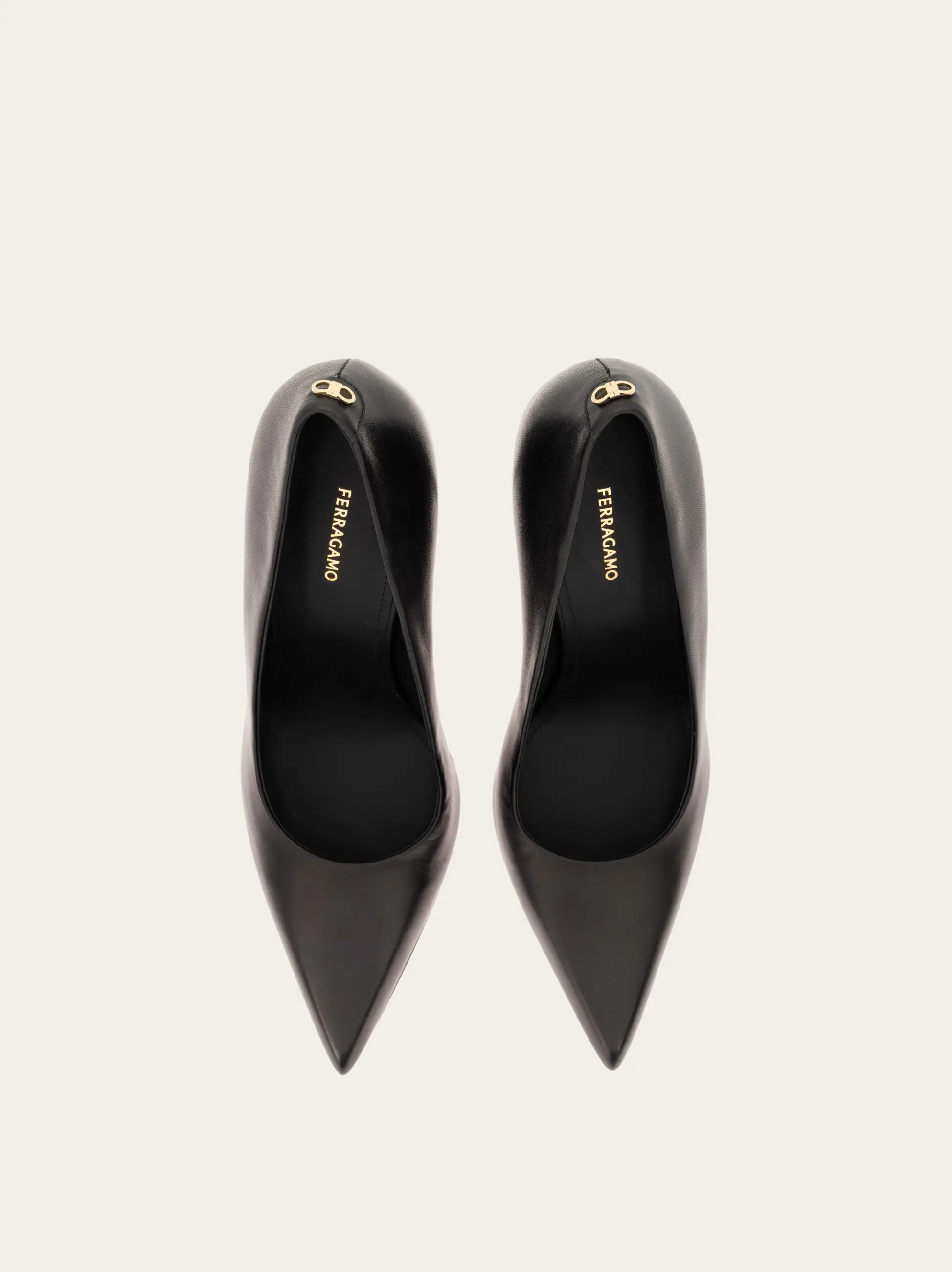 Feminine and glam with a touch of grit, this new Ferragamo pump is crafted from patent leather, specially developed for a soft hand feel, with a tortoiseshell pattern nodding to the 70s aesthetic. The golden Gancini detail, discreetly placed at the back of each ankle, adds a signature finish.