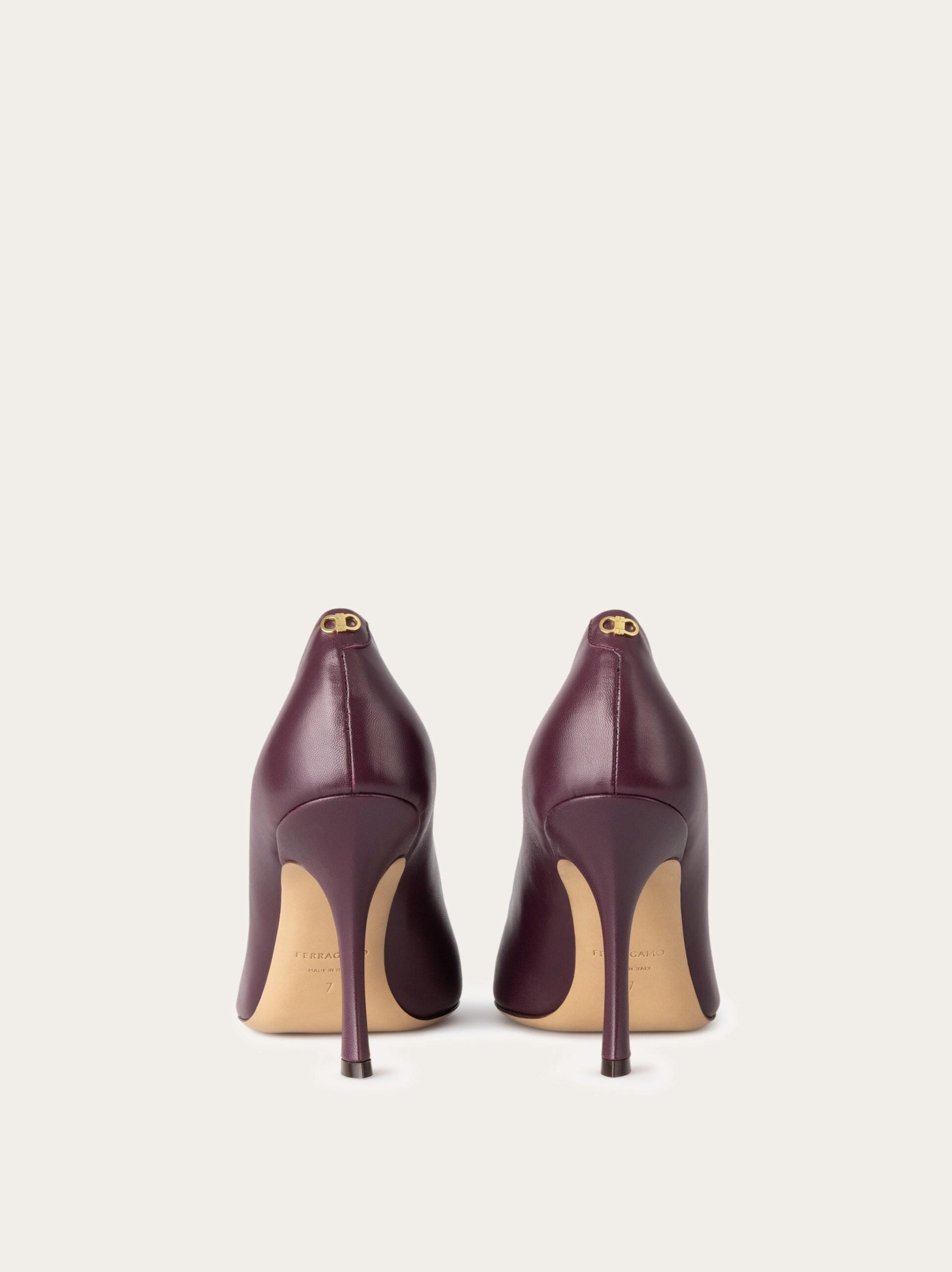 Feminine and glam with a touch of grit, this new Ferragamo pump is crafted from patent leather, specially developed for a soft hand feel, with a tortoiseshell pattern nodding to the 70s aesthetic. The golden Gancini detail, discreetly placed at the back of each ankle, adds a signature finish.