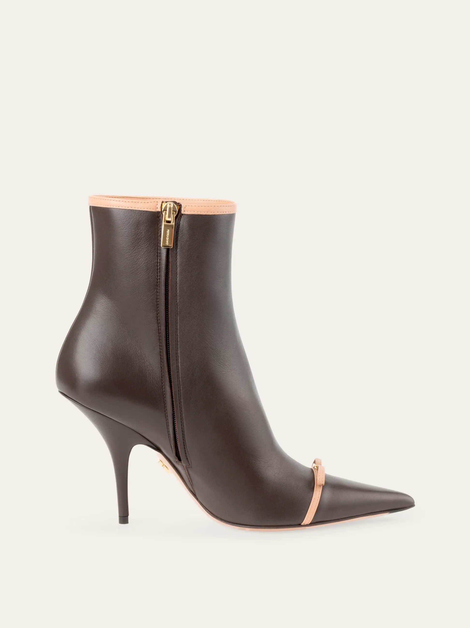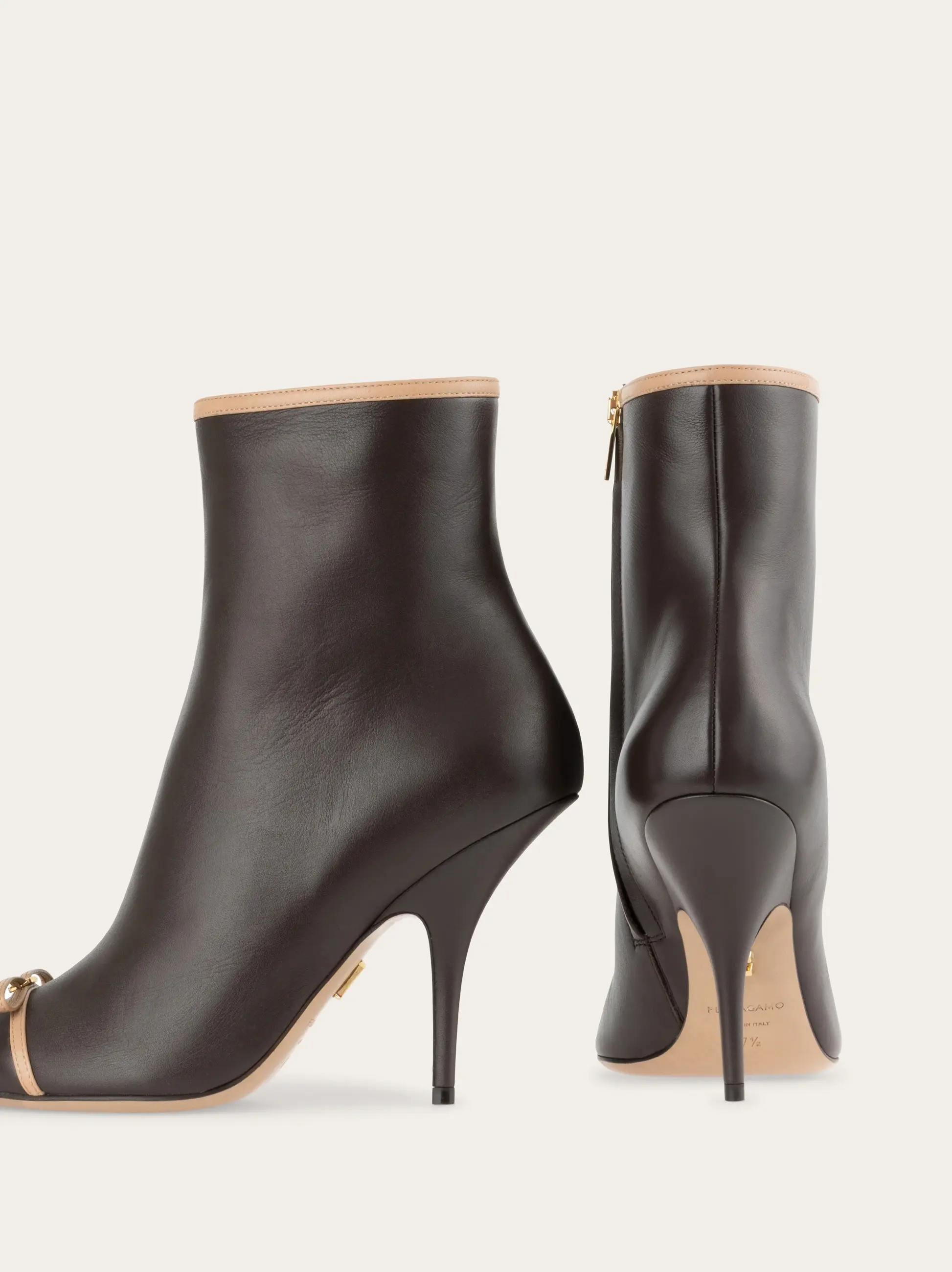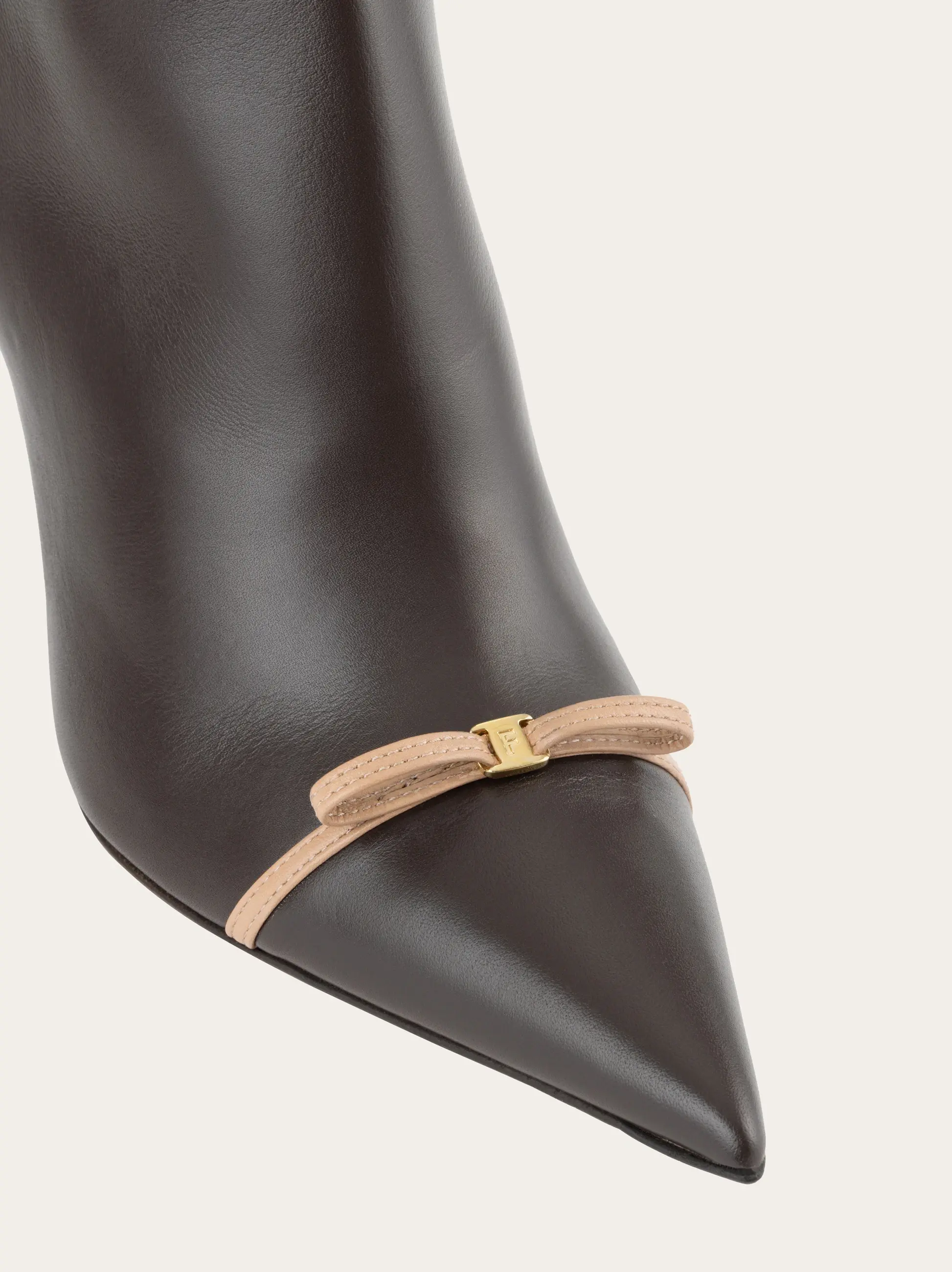 Ladylike and contemporary with just the right amount of grit. This new Ferragamo ankle boot is set on a slim mid heel with a tonal zip at the ankle for a glove-like fit. Contrasting piping and a mini bow across the toe add a touch of modern romance.