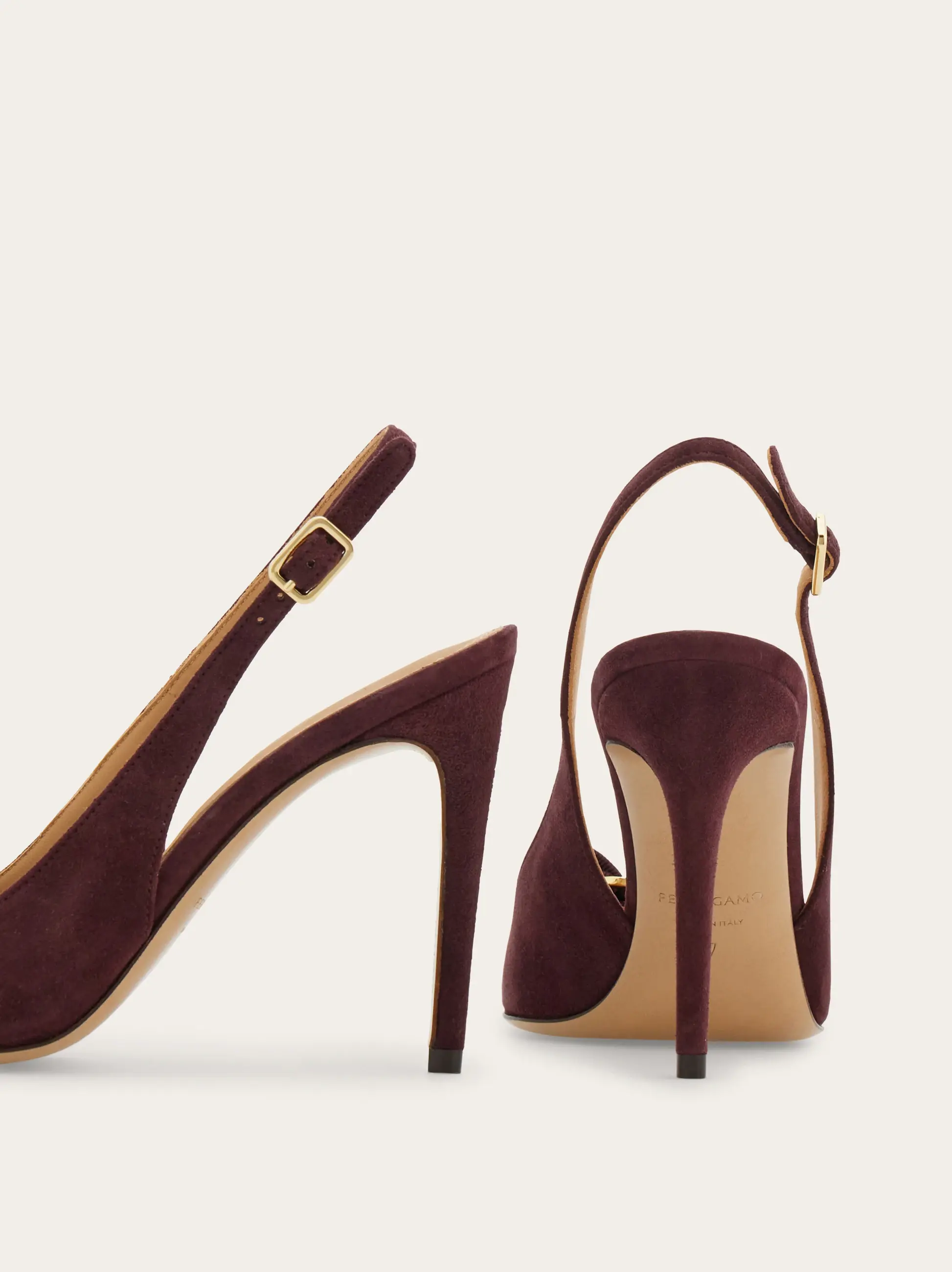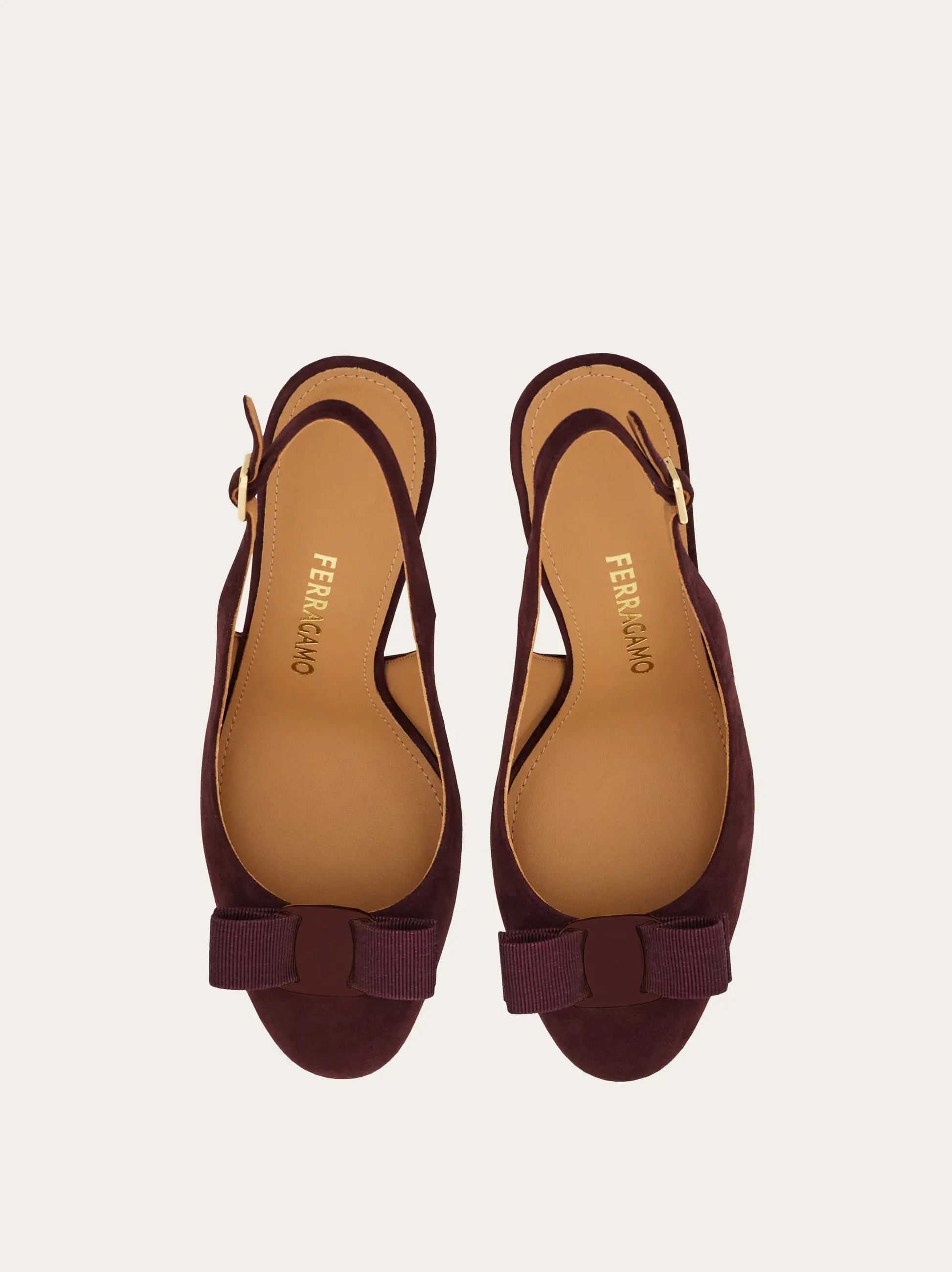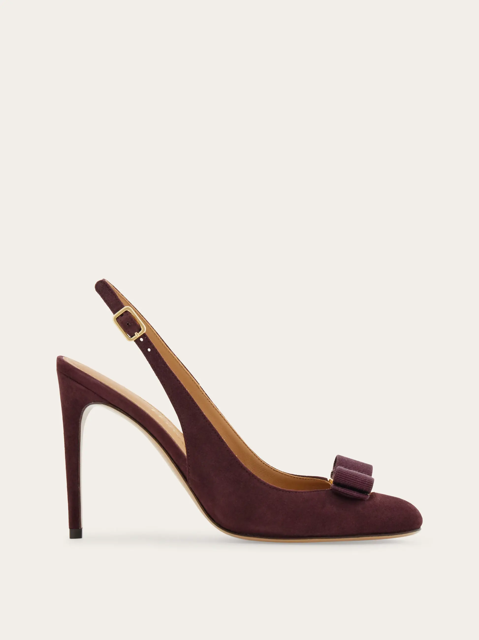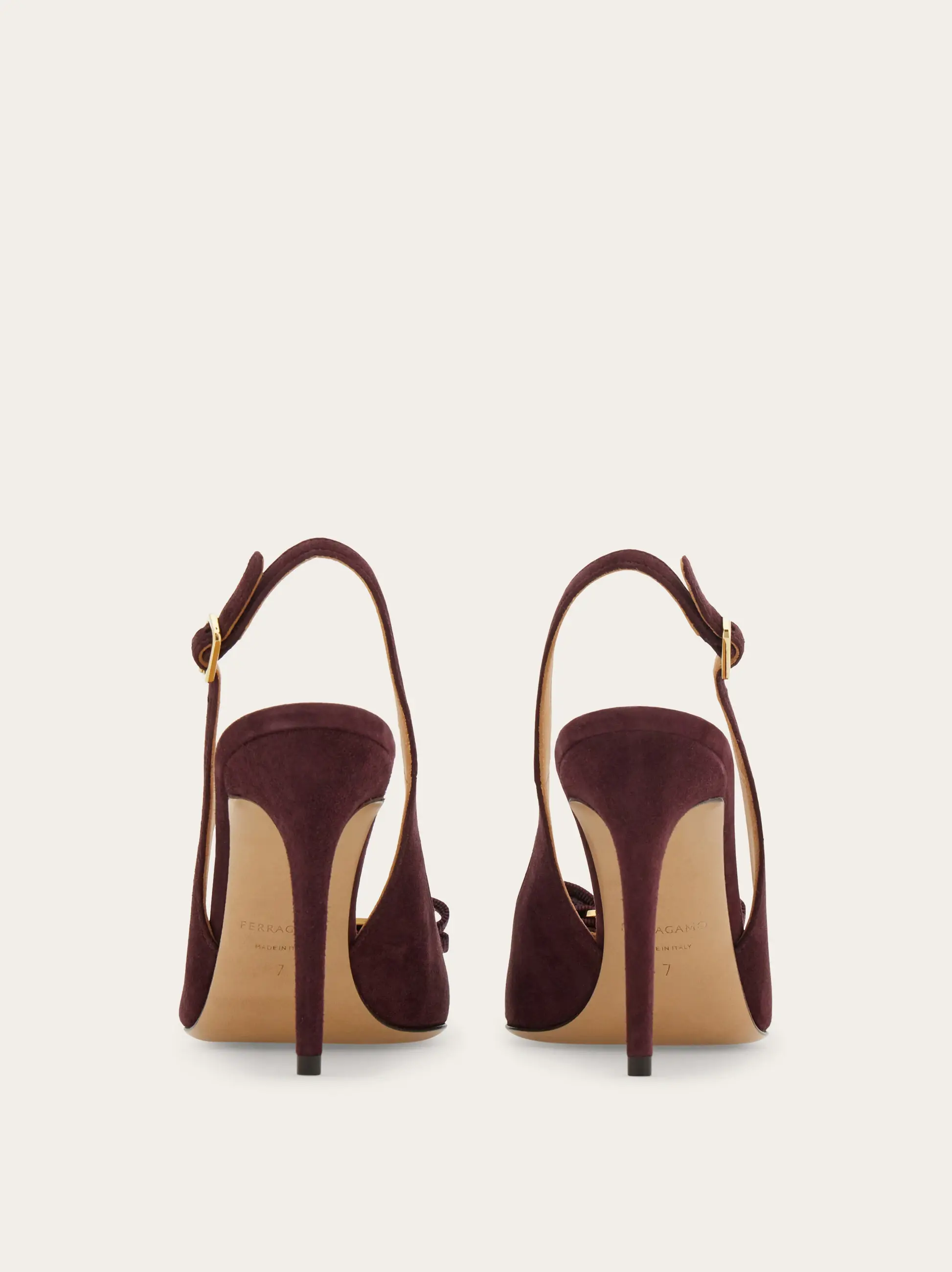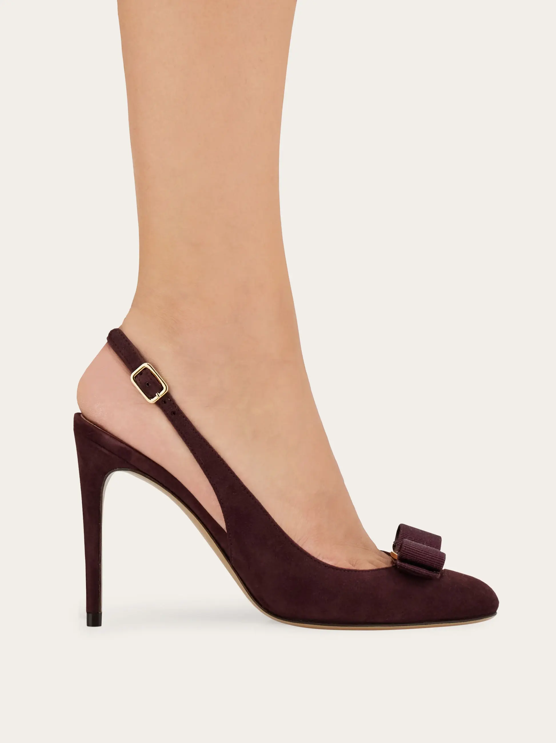 Simply stunning in the softest kid suede, Ferragamo defines contemporary femininity with this new slingback. The straight heel, almond toe and Vara grosgrain bow bring together iconic elements with modern geometries for a romantic shoe with a commanding presence.