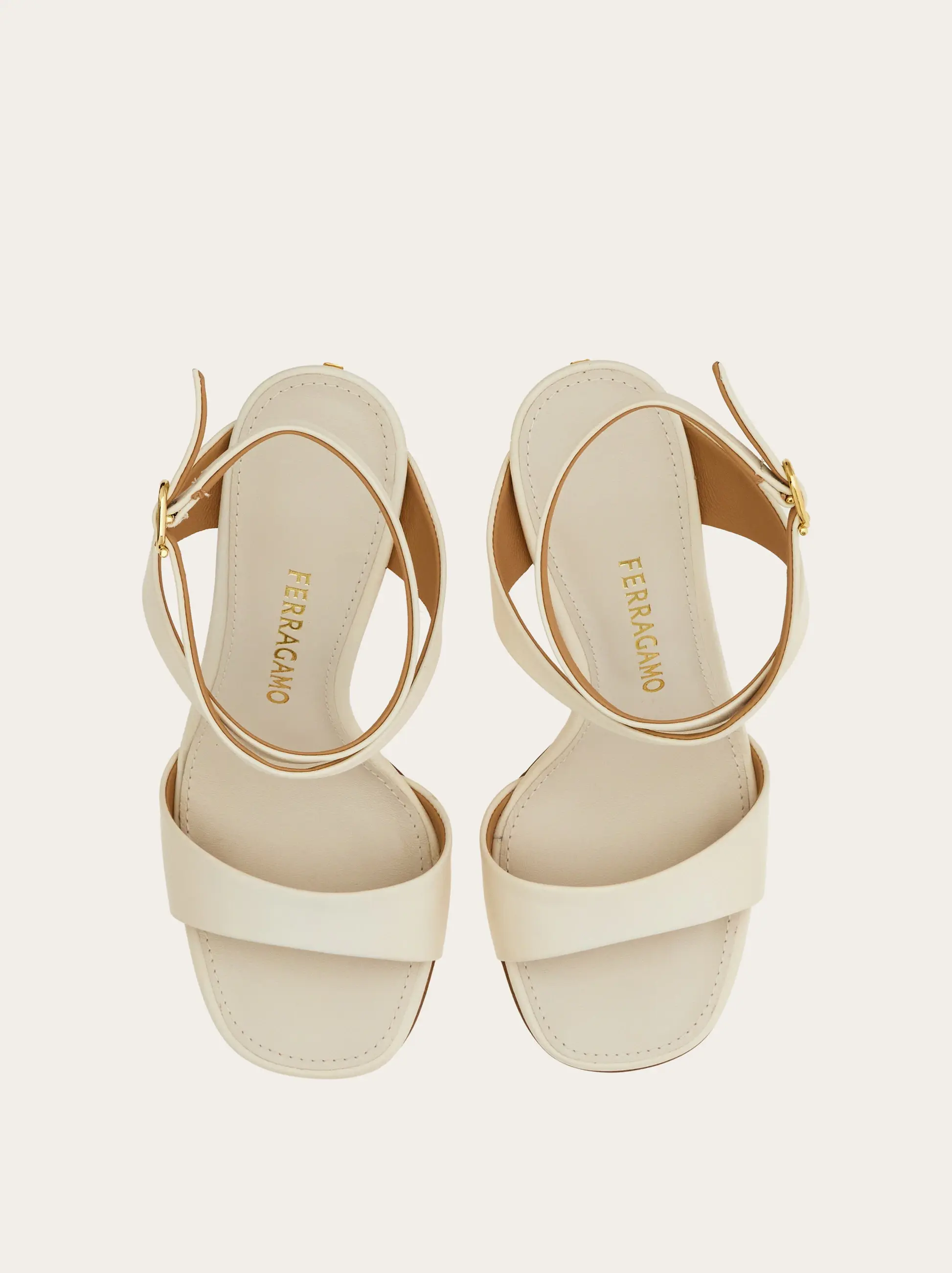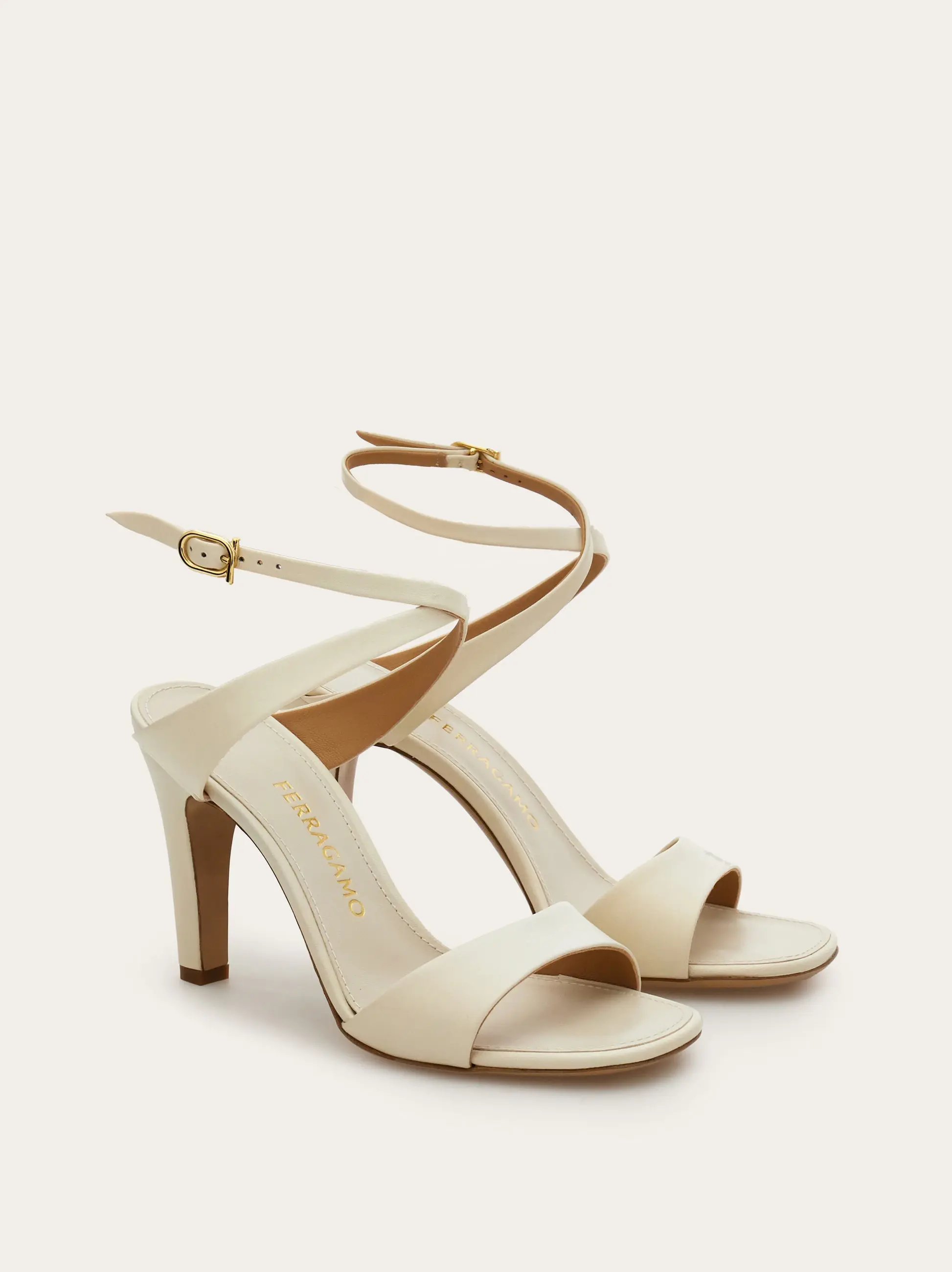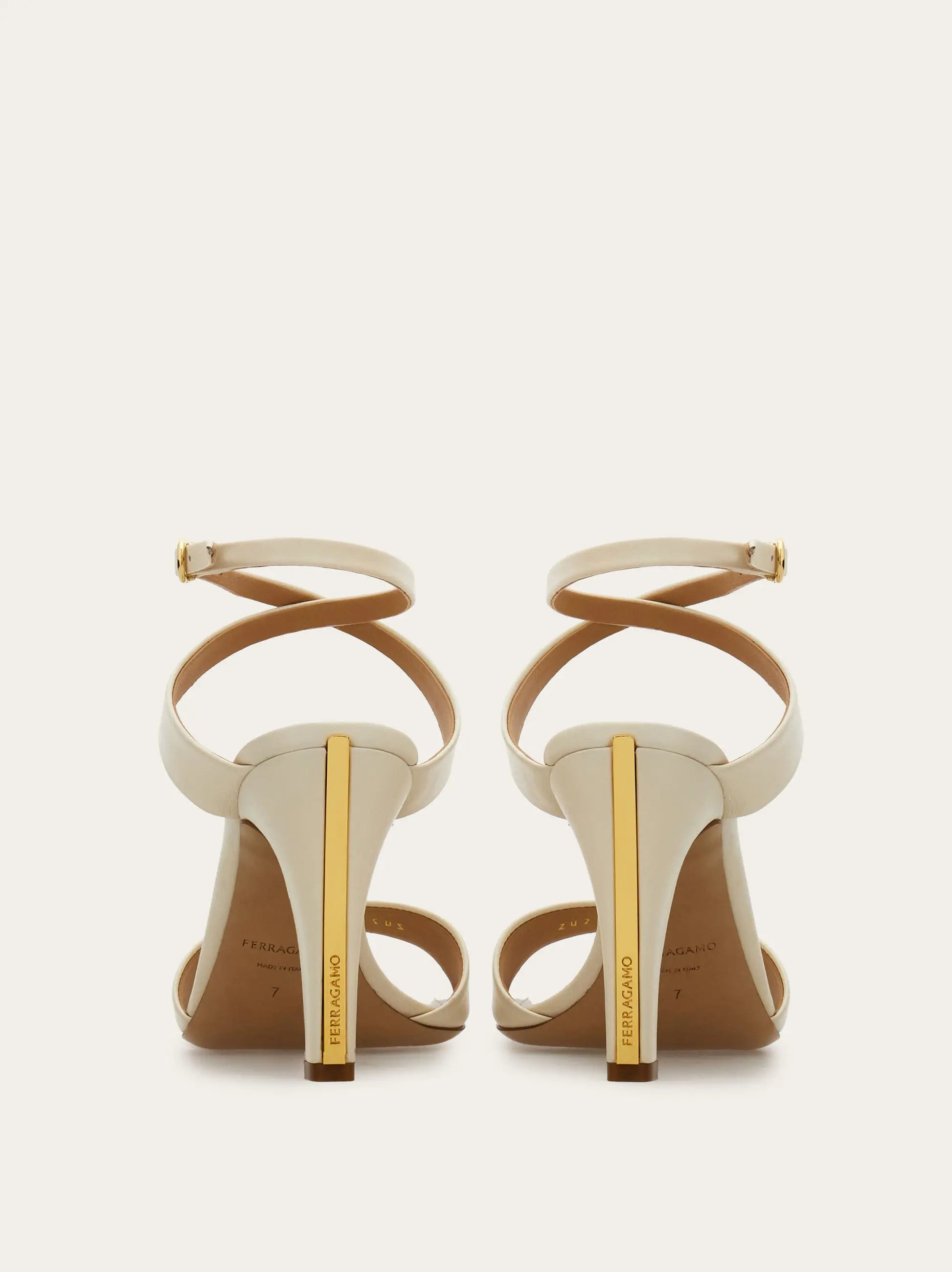 Strategically placed straps provide support and bring some serious sensuality to this high heeled sandal. Cut from soft supple kid leather, it is fastened at the ankle by a slim Gancio buckle.